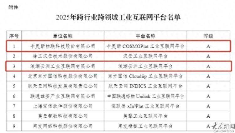 近期,工业和信息化部组织开展了2025年国家级跨行业跨领域工业互联网平台(下称“‘双跨’平台”)动态评价工作。记者从省工信厅了解到,经过材料审查、企业答辩、现场核查等环节,山东6家平台全部顺利通过评估,整体位次前移、能级加速跃升。其中,卡奥斯连续七年蝉联榜首、实现“七连冠”民间配资公司,浪潮云洲前进一位、居全国第三,橙色云、柠檬豆、胜软云帆、火石稳中有进,平台总体发展质效持续领先全国。目前,6家“双跨”平台实现大模型应用全覆盖,累计承载工业APP达7万个、连接工业设备1200多万台。